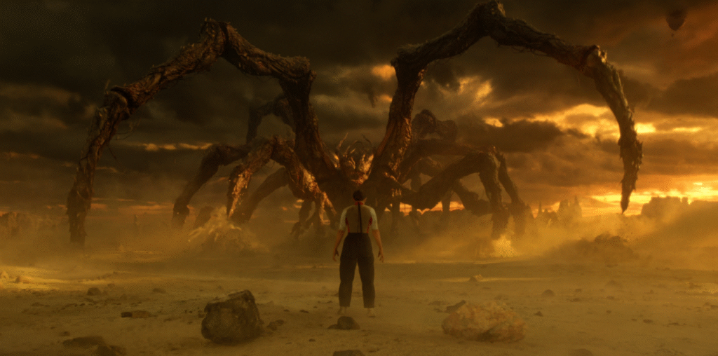 In its earliest major appearance, the Mind Flayer manifests as a colossal, spider-like shadow towering over Hawkins. This version rarely interacts physically with the real world. Instead, it invades minds, most notably that of Will Byers, using fear and memory as entry points.